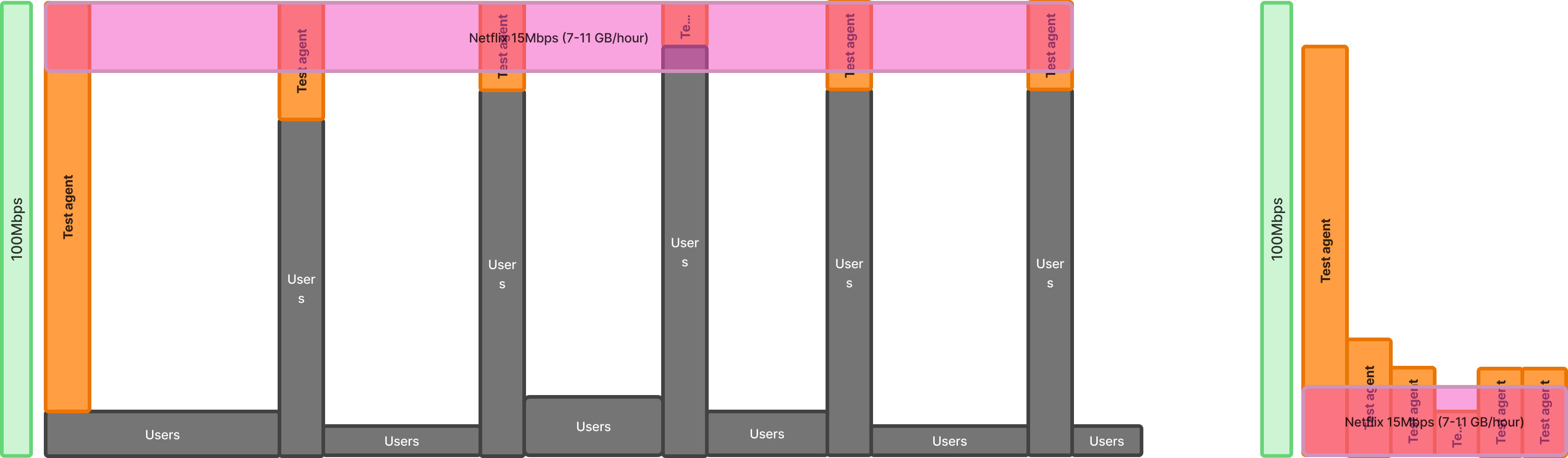 Imagine there are 6 * Netflix 4k users on a 100Mbps Gateway, let's look at different traffic stream scenarios: