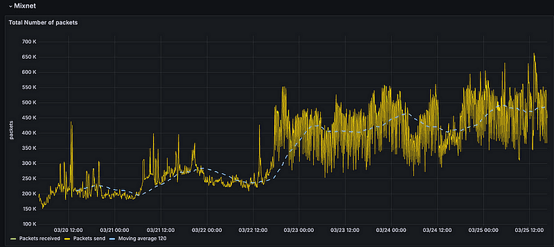 Para facilitar la comprensión de las pruebas de rendimiento, los operadores ejecutan una versión modificada del software con un punto final que monitoriza los paquetes recibidos, enviados y descartados. Este punto final permite a los operadores conectar fácilmente su propio sistema de monitorización. Esto ha permitido a la mayor parte de la comunidad aprender la importancia de la monitorización descentralizada del rendimiento. A continuación, se explica por qué…