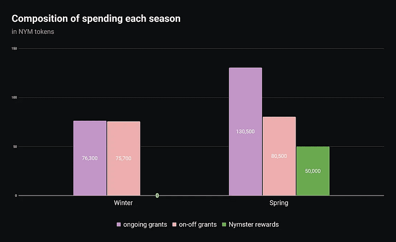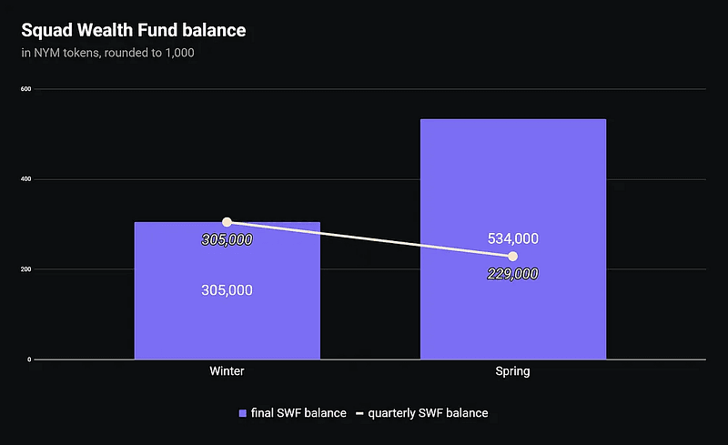 El gasto del Squad Wealth Fund aumentó de 150k a 260k NYM en comparación con la temporada de invierno. Esto se debe a que la Squad Wealth Fund creció mucho. De hecho, en esta sesión se inscribieron más de 250 nuevos participantes y se presentaron más del doble de contribuciones notables.