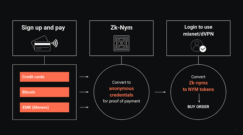 По этой причине Nym разработала систему анонимных платежей, называемую Zk-Nyms ( zero -k knowledge identity verification). По сути, это тип анонимной подписи, который позволяет пользователям генерировать учетные данные, не предоставляя Nym, поставщику услуг, сведения о том, кто они. Таким образом, Nym как компания не знает, кто и сколько платит, а знает только, что есть действительные учетные данные для использования сети.