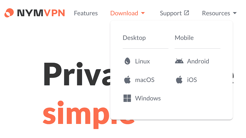 2. Загрузите NymVPN на свое устройство из строки меню.