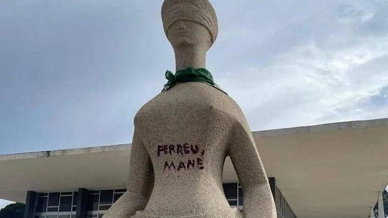 Скульптура «A justiça» [К правосудию] осквернена. Источник