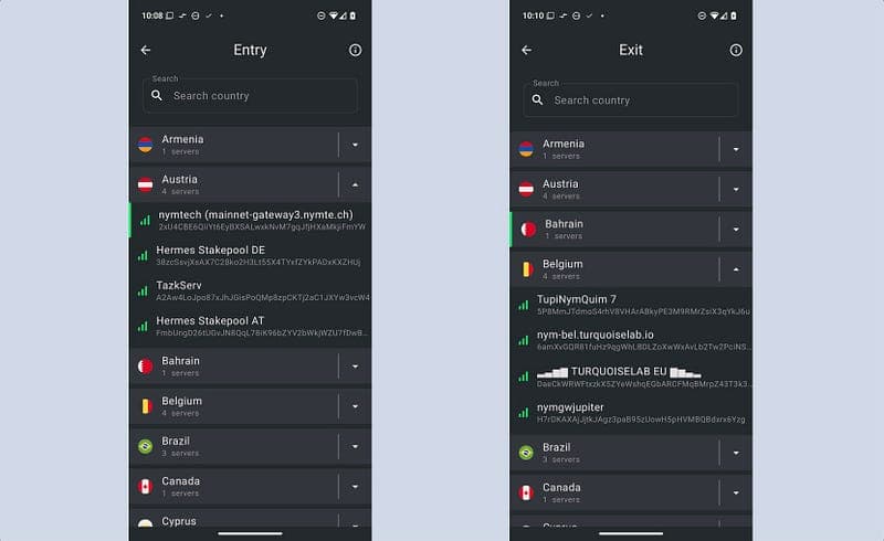 Ключевой особенностью сети Nym является возможность исследовать и выбирать определенные шлюзы в приложении на основе их производительности и ставки.