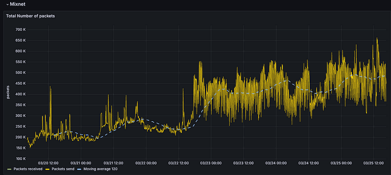İlk iki test, operatörlerin ve ekibin canlı, merkeziyetsiz bir mixnet üzerinde performans testi yapmanın en iyi yöntemini öğrenmelerini sağladı. Bu, daha önce denenmemiş bir adımdı! Node’lar artık yeni ikili dosyalara yükseltildi, merkeziyetsiz izleme altyapısı kuruldu ve Nym Q/A ekibi tüm sistemleri hazırladı. Amacımız, saniye başına paketleri ve baytları izleyerek genel performansı etkileyen metrikleri anlamaya başlamaktır.