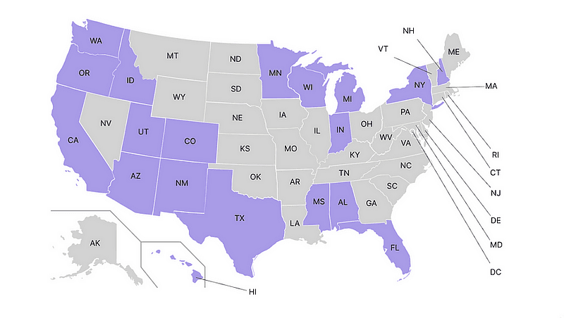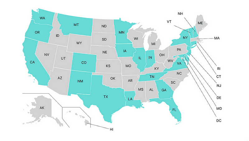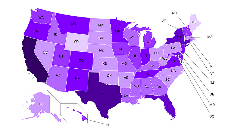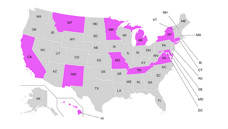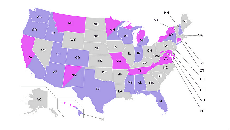 Nếu không có lá chắn bảo vệ quyền riêng tư tập thể/cộng đồng, thách thức là cân bằng các biện pháp quản lý nhằm hạn chế nội dung có hại mà không rơi vào tình trạng kiểm duyệt. Bản đồ bên dưới chỉ ra số lượng danh mục liên quan đến MDM, được phân biệt theo cường độ màu, tại mỗi tiểu bang đã ban hành luật. Các màu đậm hơn biểu thị các tiểu bang có luật trên nhiều danh mục hơn, trong khi các màu nhạt hơn biểu thị các tiểu bang có ít hoặc không có luật MDM. Trong khi các tiểu bang có khuynh hướng Dân chủ thường dẫn đầu trong việc ban hành các quy định về MDM, dữ liệu nghiên cứu của Nym cho thấy rằng chỉ riêng khuynh hướng chính trị không giải thích đầy đủ cho sự khác biệt trong các luật này giữa các tiểu bang. Mặc dù các tiểu bang Dân chủ có thể có xu hướng hướng tới quy định rộng rãi hơn, nhưng mối tương quan này yếu và không đáng kể về mặt thống kê, cho thấy quy định về MDM không chỉ đơn thuần là vấn đề của “tiểu bang xanh”.
