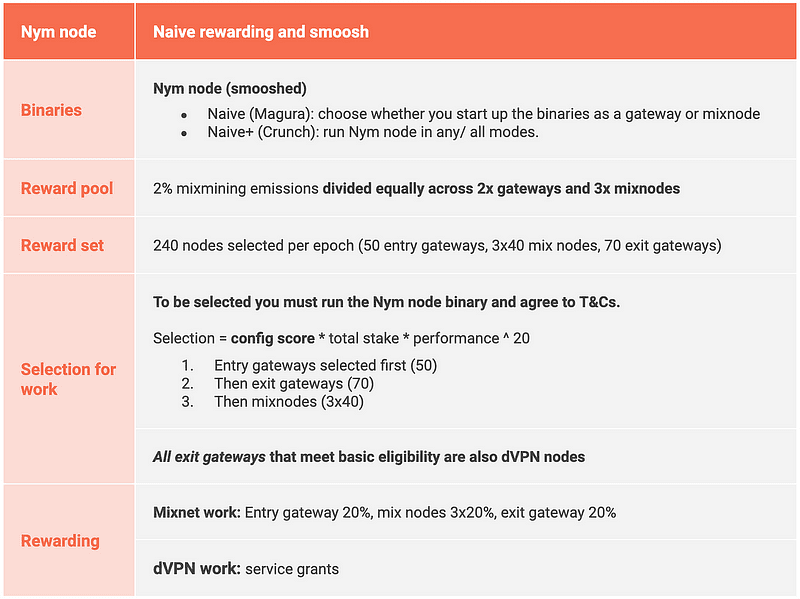 - 行动 完成 smoosh 项目要求操作员升级运行 Nym 节点二进制文件。 这意味着操作员将在网关或混合节点模式下运行单个二进制文件。 网关必须首次获得授权,才能被选入活动集。