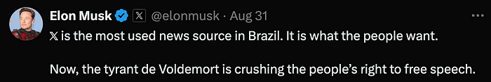 Hasta ahora, los medios de comunicación se han centrado principalmente en Elon Musk, CEO de X, como “defensor de la libertad de expresión” frente a las medidas de censura “autoritarias” adoptadas por el Tribunal Supremo de Brasil. Ambas posturas tienen algo de cierto, pero la situación es mucho más confusa de lo que parece. Al final, centrarse en el conflicto entre dos egos ideológicos oscurece demasiadas cuestiones reales.