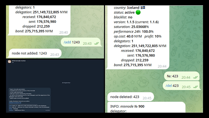 • Rastreador de delegaciones: El miembro de la comunidad bumpmeup creó un bot de Telegram para obtener actualizaciones en tiempo real sobre el rendimiento de los nodos Nym donde están el staked de tus tokens.