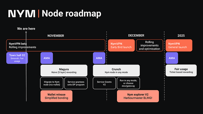 Ниже приведено описание того, чего следует ожидать от дорожной карты нод NYM по месяцам до 2025 года.